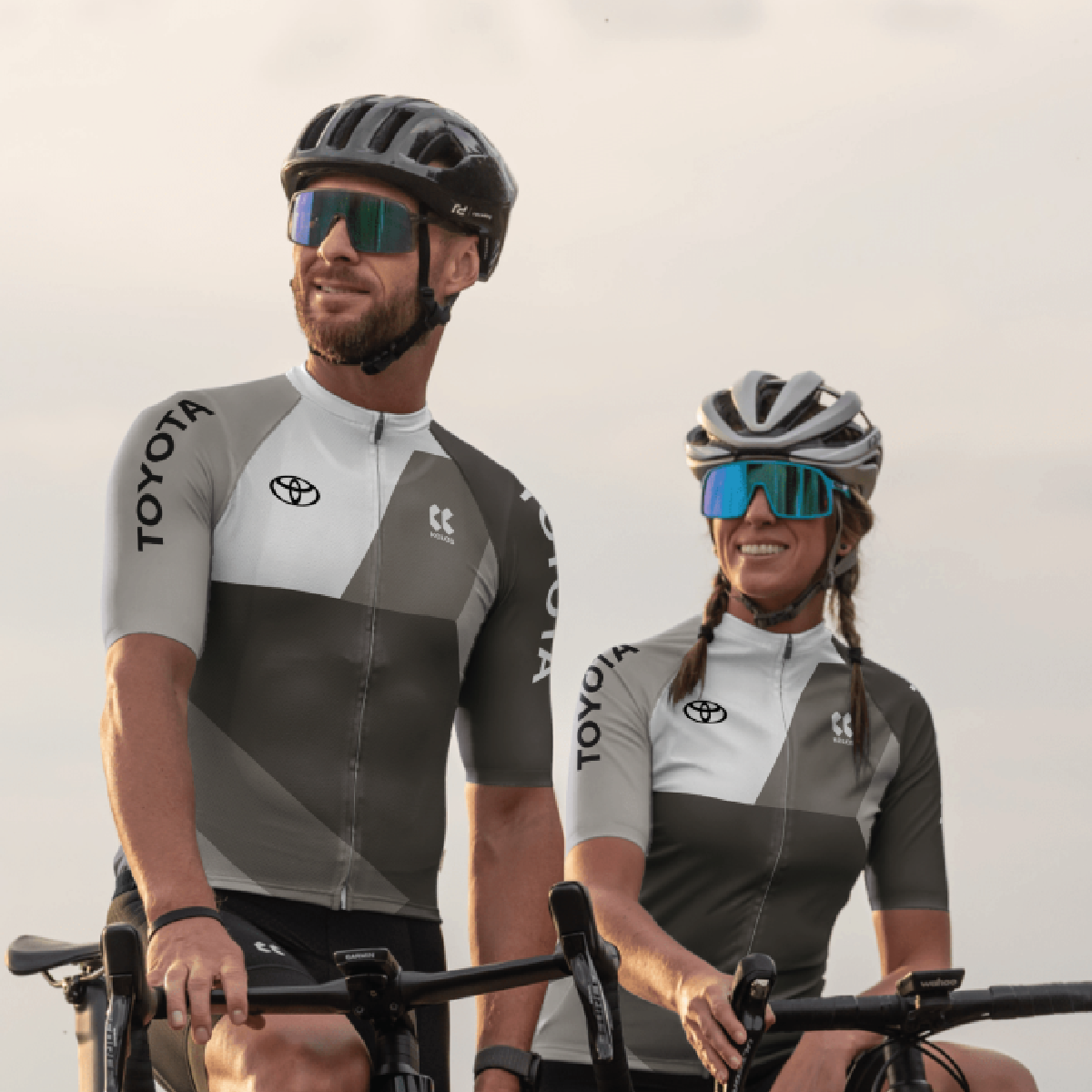 Stylový cyklistický dres Toyota s moderní geometrickou grafikou a plným zipem. Lehký, prodyšný a skvěle padnoucí, ideální pro sportovní jízdu.