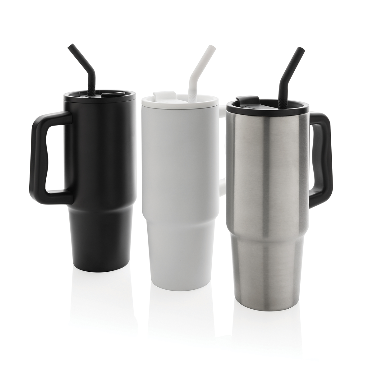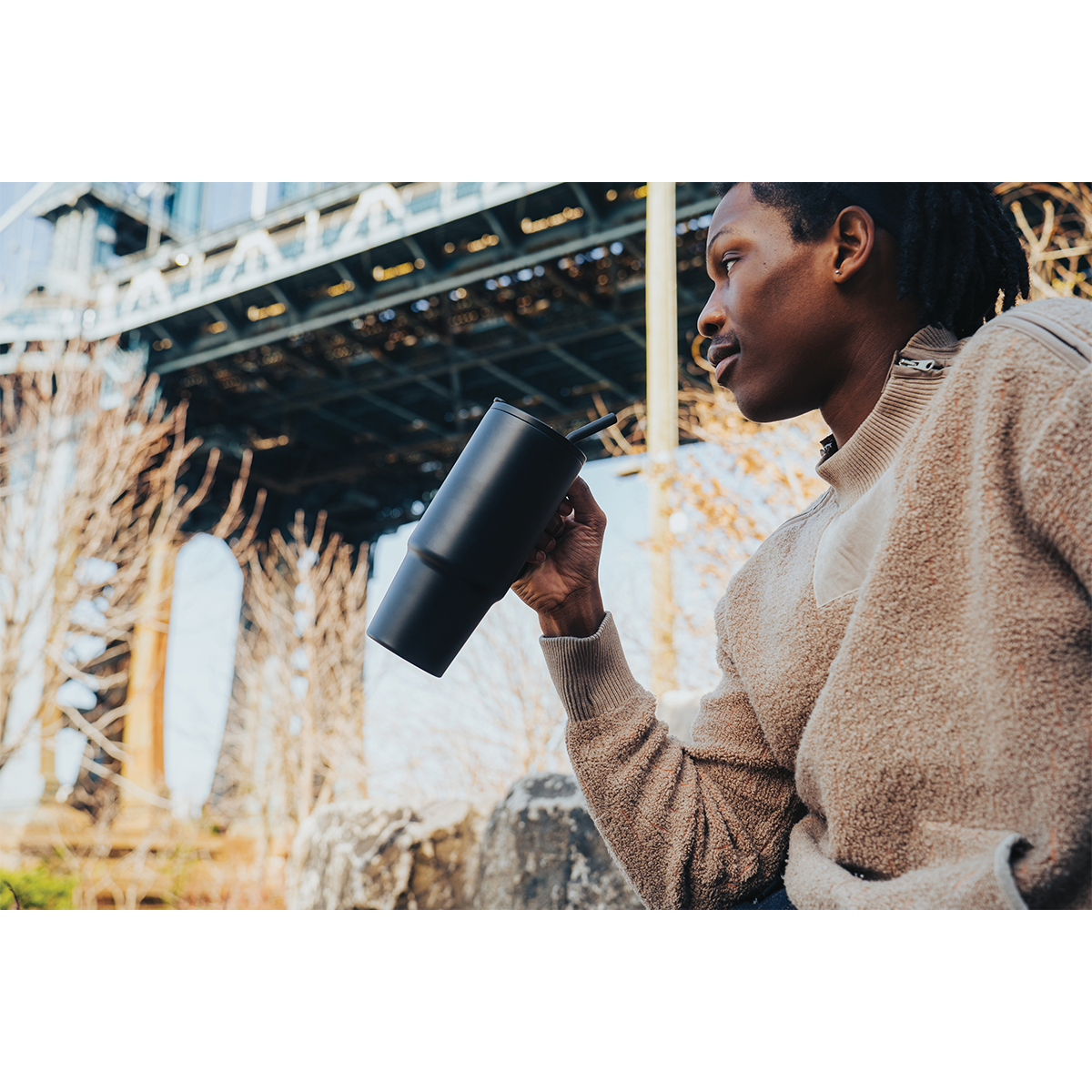 Zažijte prostorný a zároveň pohodlný přenosný komfort našeho velkorysého hrnku – ani příliš velkého, ani příliš malého. Díky pohodlné rukojeti a štíhlé základně se perfektně hodí do většiny držáků na nápoje a zajistí vám osvěžení, ať už strávíte dlouhý den schůzek, zvládnete kurz veslování nebo se vydáte na výlet mimo město. Tento hrnek o objemu 900 ml, vyrobený z odolné recyklované nerezové oceli, se vypořádá s výzvou hydratace. Tento dvoustěnný, vakuově izolovaný hrnek je dodáván s víčkem proti rozlití, brčkem z recyklované oceli a silikonovou špičkou brčka. Šroubovací víčko se pyšní dvojí funkcí a nabízí praktický výlev na pití nebo možnost použití brčka. Doporučujeme ruční mytí. Certifikace RCS zajišťuje plně certifikovaný dodavatelský řetězec recyklovaných materiálů. Celkový obsah recyklovaných materiálů: 70 % vztaženo na celkovou hmotnost výrobku. Bez BPA.